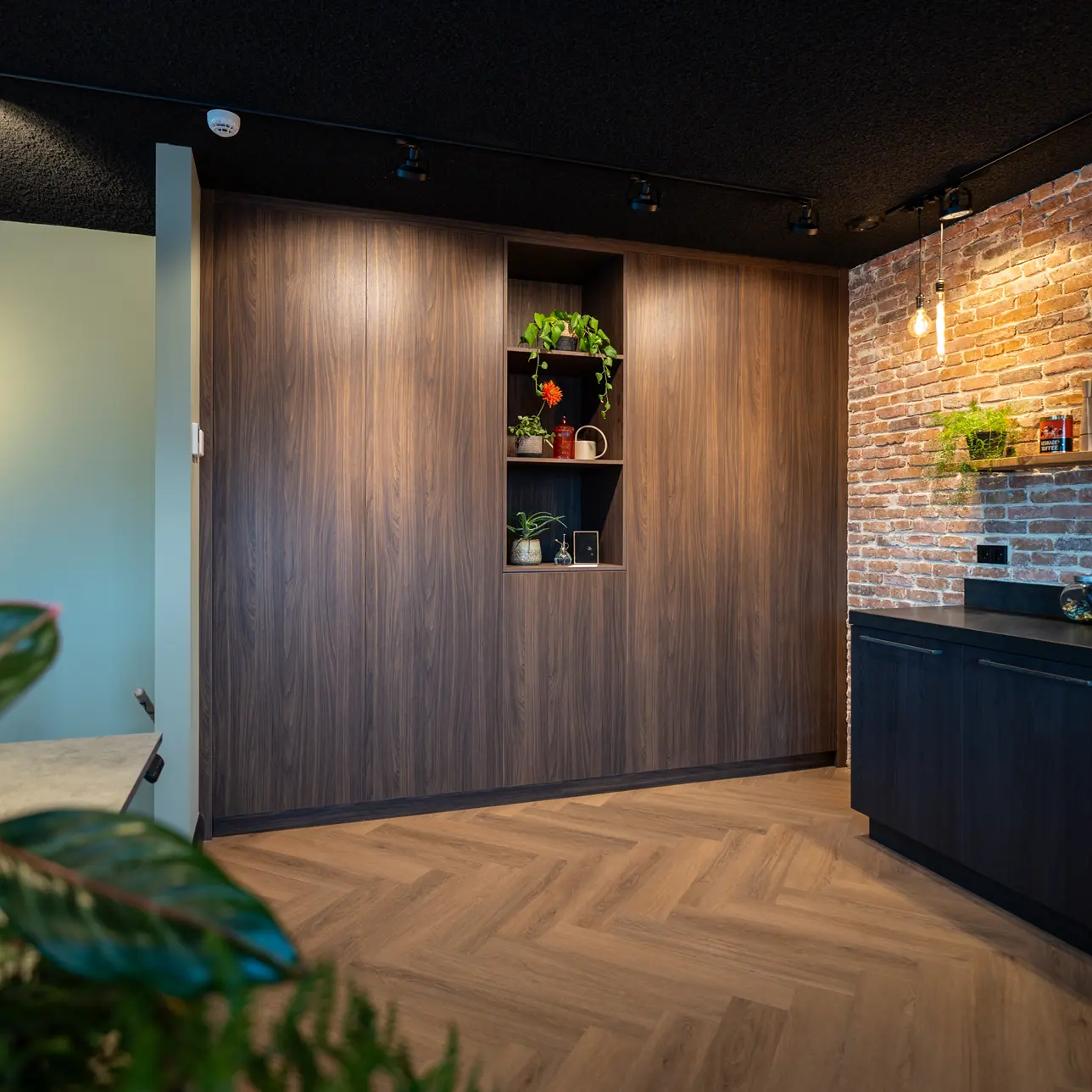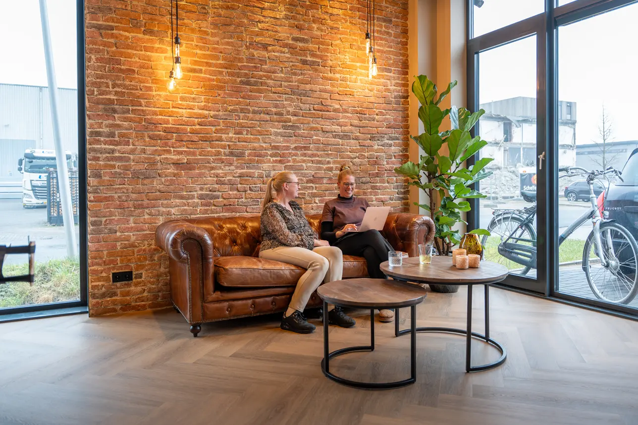 Daarnaast is er een informele zithoek voor klantgesprekken of een gezamenlijke lunch.